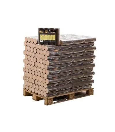 Geliefert werden 960 kg auf einer stabilen Palette, aufgeteilt in 96 Bündel à 12 Briketts, was eine einfache Handhabung und platzsparende Lagerung ermöglicht.
